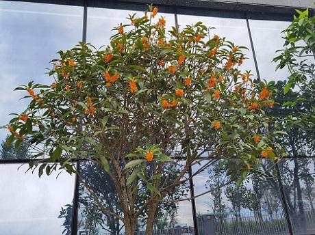 ?????? ??一走進(jìn)大禹公司大門(mén),就能聞到一股撲鼻清香的桂花味,金燦燦的桂花小花瓣散發(fā)出迷人悠長(zhǎng)的香氣,讓人心曠神怡。