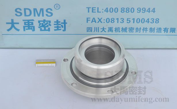 ? ? ? SDMS-80S機械密封只能用于含顆粒較少的場合,如某廠含砂重油泵,含砂量3%左右。顆粒太多時,容易在動 環(huán)密封圈處阻塞,使動環(huán)失去浮動性。該圖左面的端面與介質(zhì)接觸,設(shè)計成靜止內(nèi)流式,顆粒不易進入摩擦副,動、靜環(huán)的密封圏也得到了保護。另外用沖洗液進行沖洗,中間充封液進行“封堵”,使顆粒破壞機械密封的可能性減到最小。